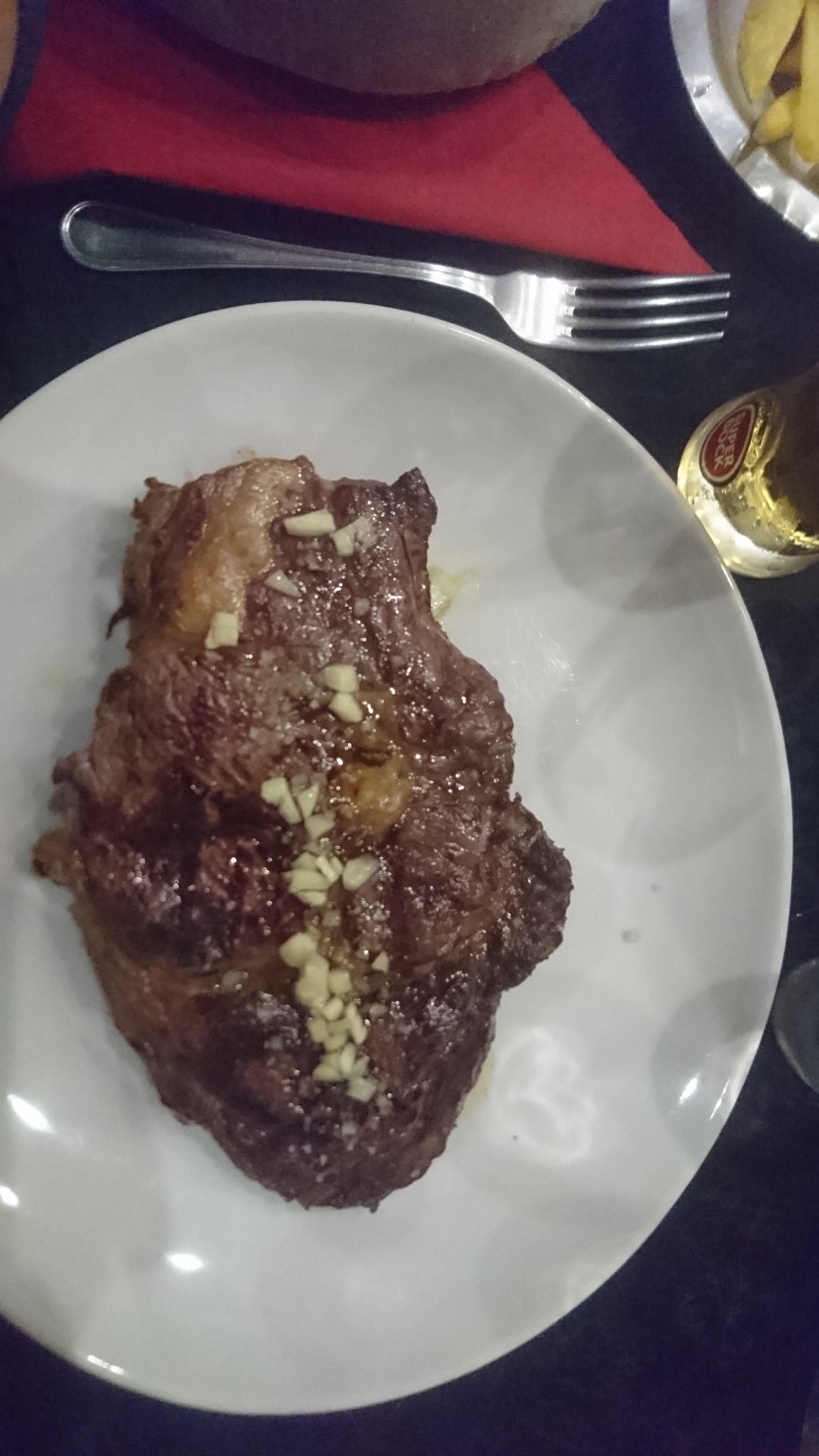 Excellente viande. Quantité à la portugaise, donc très très copieux. Légumes à volonté. Juste se méfier de la cuisson, nous avions demandé à point et c'était très cuit. Sinon un régal.