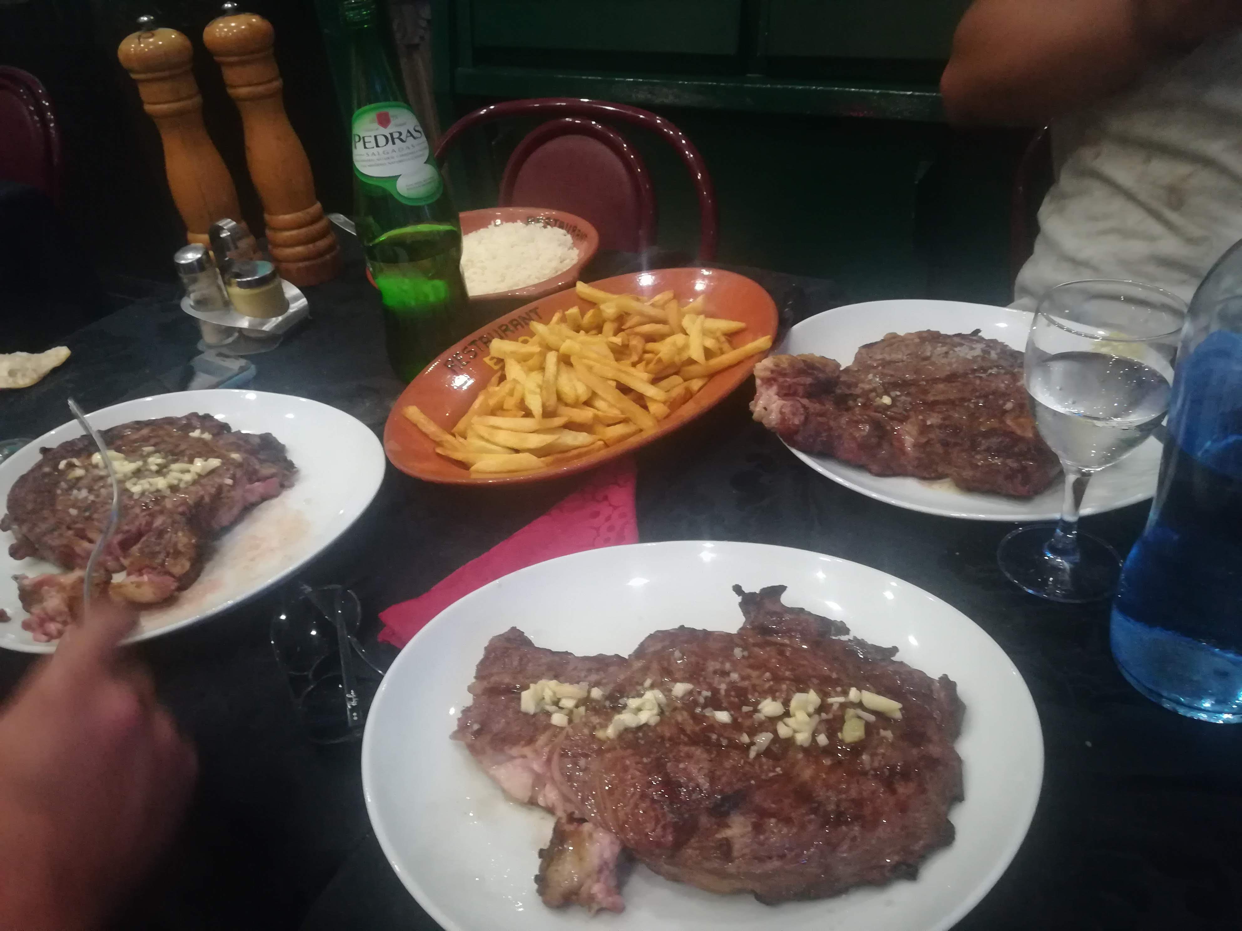 Énormes côtes et entrecôtes fondantes. Vins portugais intéressants